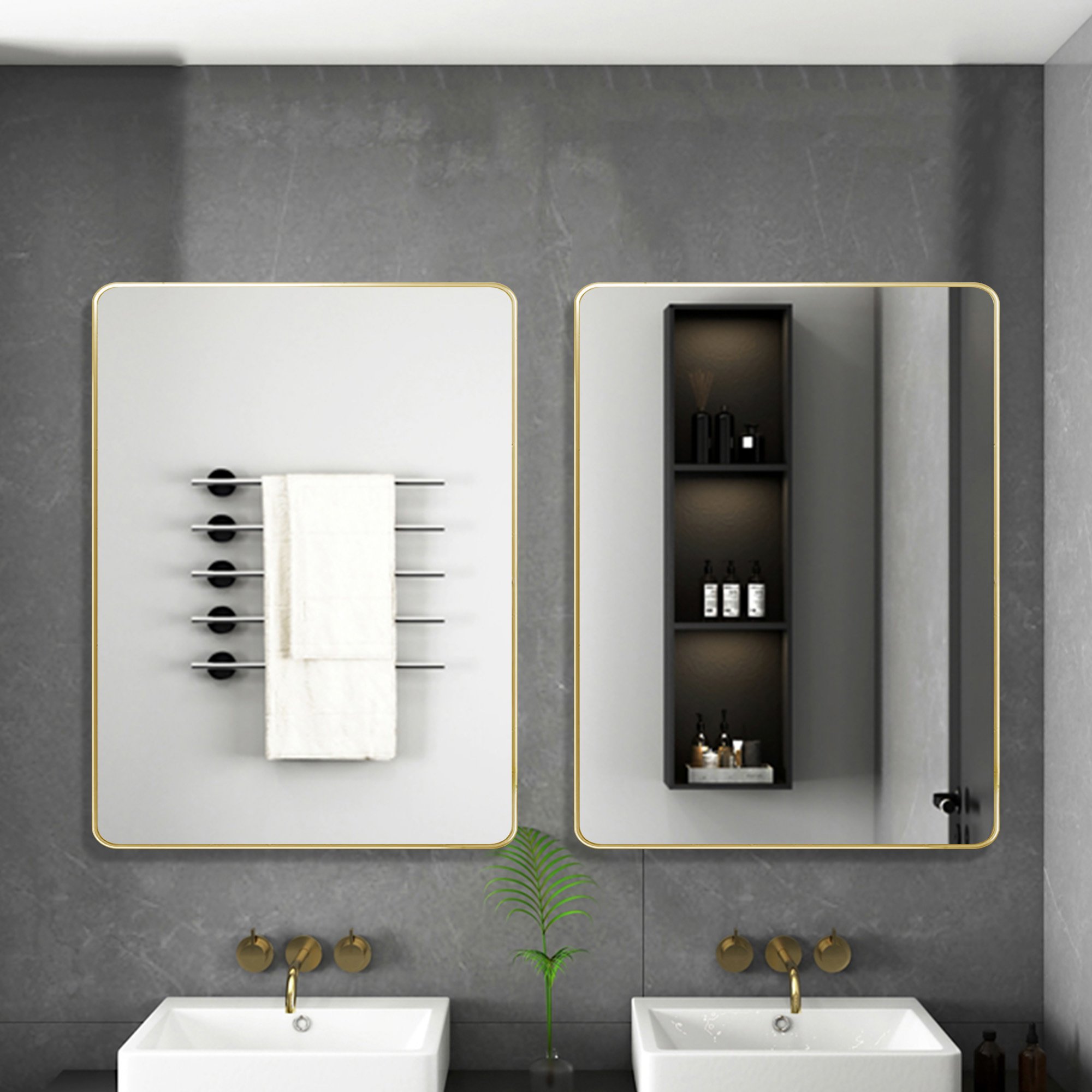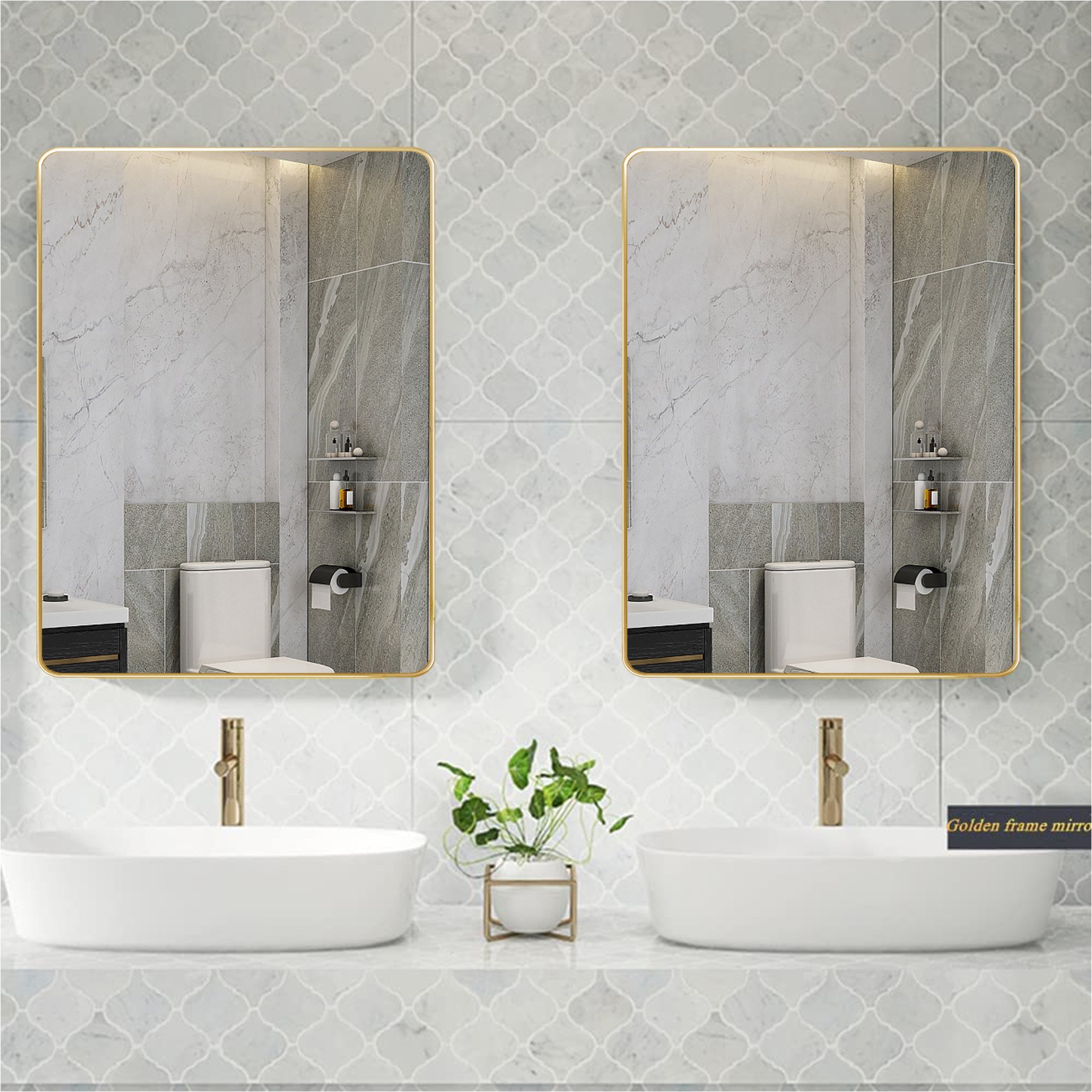 Home > 32 x 24 Inch Gold Bathroom Mirror for Wall Vanity Mirror with Non-Rusting Aluminum Alloy Metal Frame Rounded Corner for Modern Farmhouse Home Decor