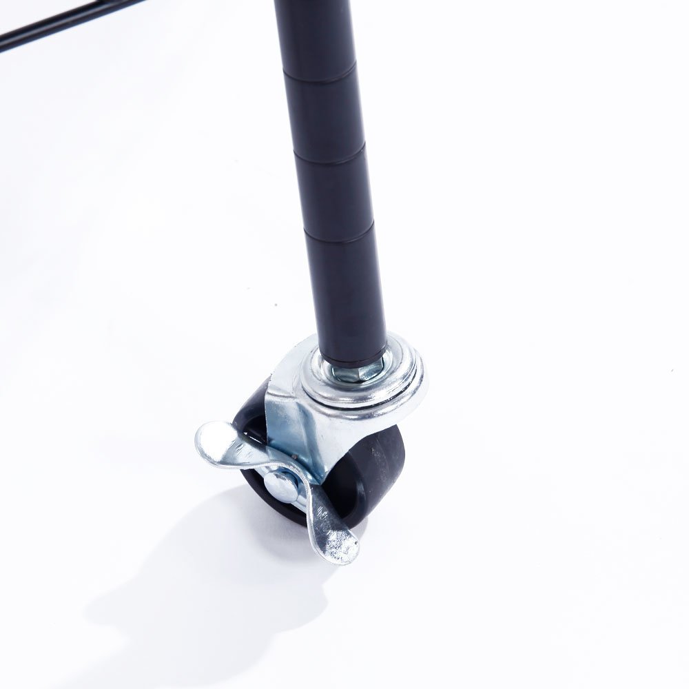 6-Layer Plastic Coated Polygonal Corner Shelf with 2" PP Wheels 680*680*1800 Black