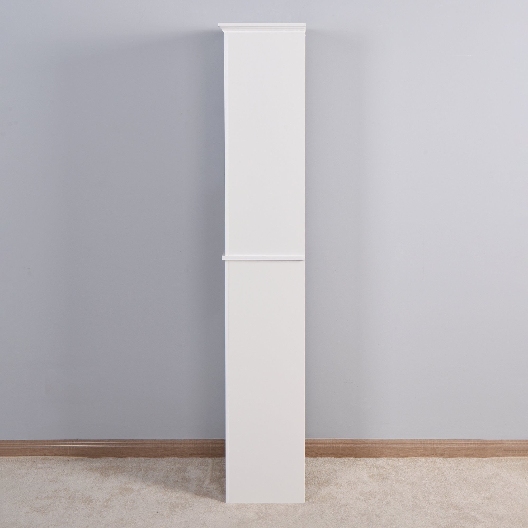 DescriptionSleek design and durable wood composition: This multifunctional cabinet is made from durable updated P2 MDF, prevent moisture & water-resistant wooden material is suitable for humid environment. White color can well match our other home Furniture.Parameters:- Dimensions: 15.75 x 11.81 x 66.93 inch, - Color: white- Gross weight: 46 lbShipping List:- 1 x Storage Cabinet- 1 x Instructions- 1 xAccessories BagBeautiful And Well Made: This item is good for adding storage (and hiding things) in a small bathroom.Comes with 6 shelves in total, Cabinet is sturdy and attractive.Large Storage Capacity,Multiplace use: This upright storage cabinet features with 1 adjustable shelves in each of 1 storage space with door,It provides convenient storage for towels, linens and other bath gadgets in a compact space. Multiplace use in the living room, bedroom, kitchen, bathroom etc.Product DimensionsAssembled Length (in.):15.75Assembled Width (in.):11.81Assembled Height (in.):66.93Weight (lbs.):46.00Package SizeLength (in.):37.60Width (in.):16.34Height (in.):7.28Weight (lbs.):48.50