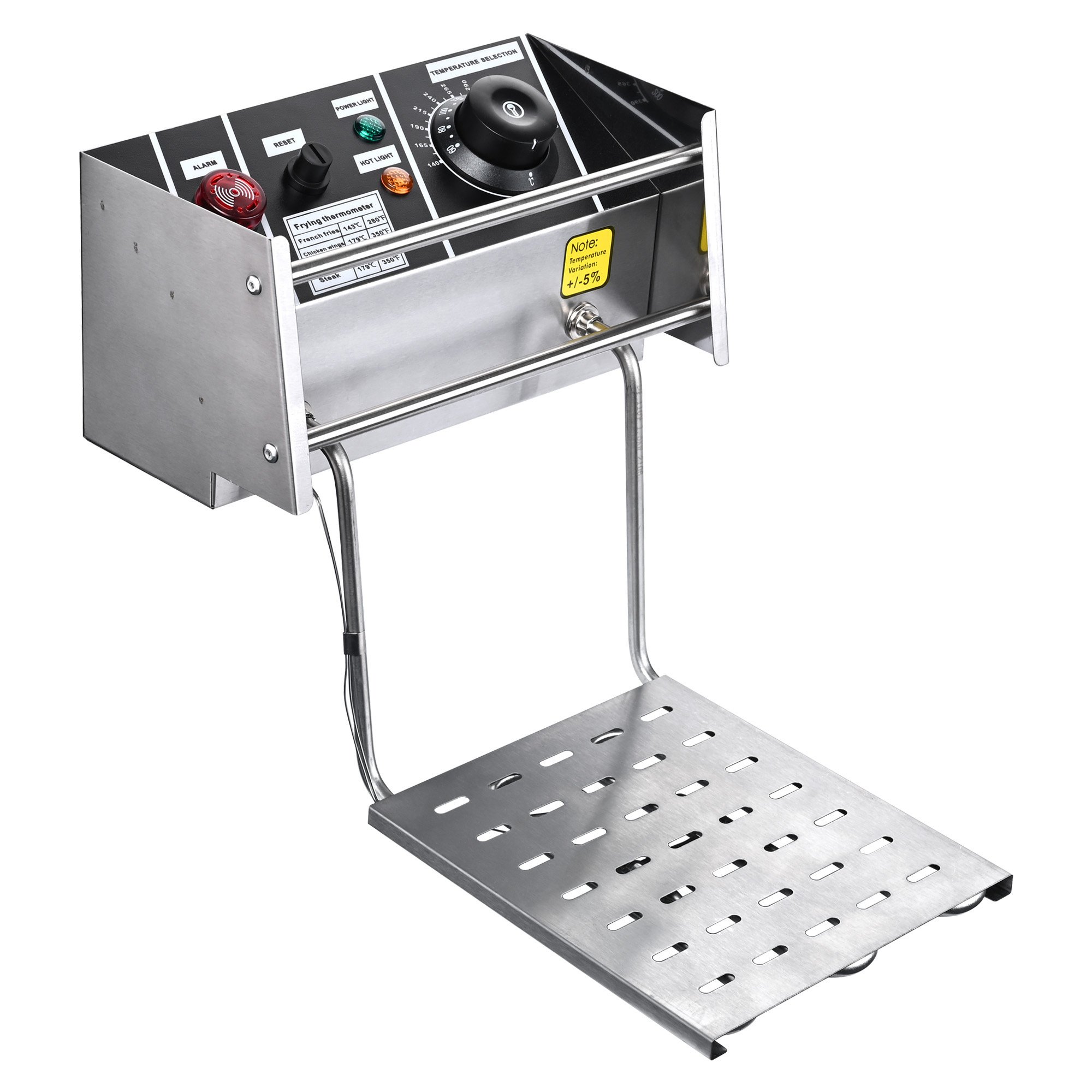 - Automatic Temperature Control & Safe Use - Keeps preset temperature to prevent overcooking; Equipped with temperature limiter and alarm buzzer for overheat protection; it will cut off the power automatically if the temperature reaches 464 degrees Fahrenheit; Plastic handle on basket avoids scalding hands-Durable & Large Capacity - Made of heavy duty 0.6mm thickened stainless steel for enhanced durability; sturdiness and anti-corrosion ; Includes 2 tanks; each with 12 L capacity for holding 5 pairs of wings or 3 Lbs chips; ideal for frying different food at the same time; maximumly satisfying commercial use - Easy to Operate - 2 Temperature knobs for separate control simplifies operation; easily make delicious food for professional or beginner;Oil volume scale on the tank for convenient oil control - Convenient to Clean - Stainless steel frying basket & residue plate to filter out dregs; lid cover prevents spilling oil & messing up kitchen; Detachable tanks for easier cleaning