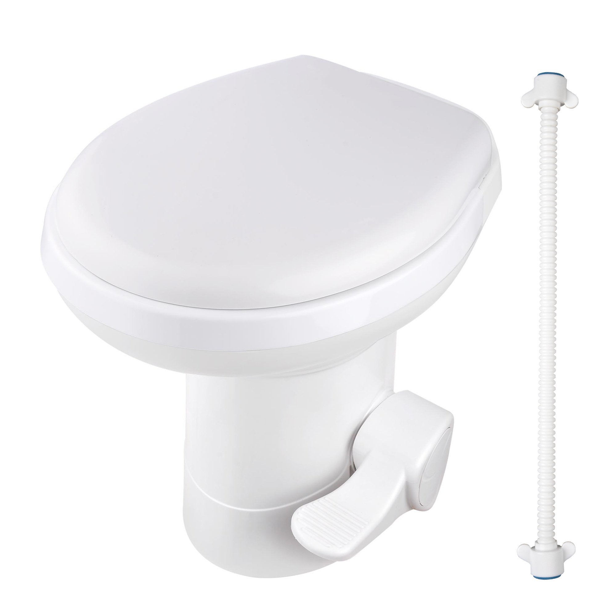 - Foot Pedal Flush - RV Gravity Flush Toilet; designed for travelling; is easy to use by stepping on the foot pedal half way for adding water and full activation to provide a full-bowl coverage flush