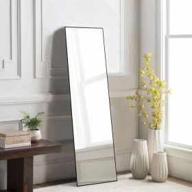 Floor Standing Mirror, Wall Mirror with Stand Aluminum Alloy Thin Frame,16''*59'',Black