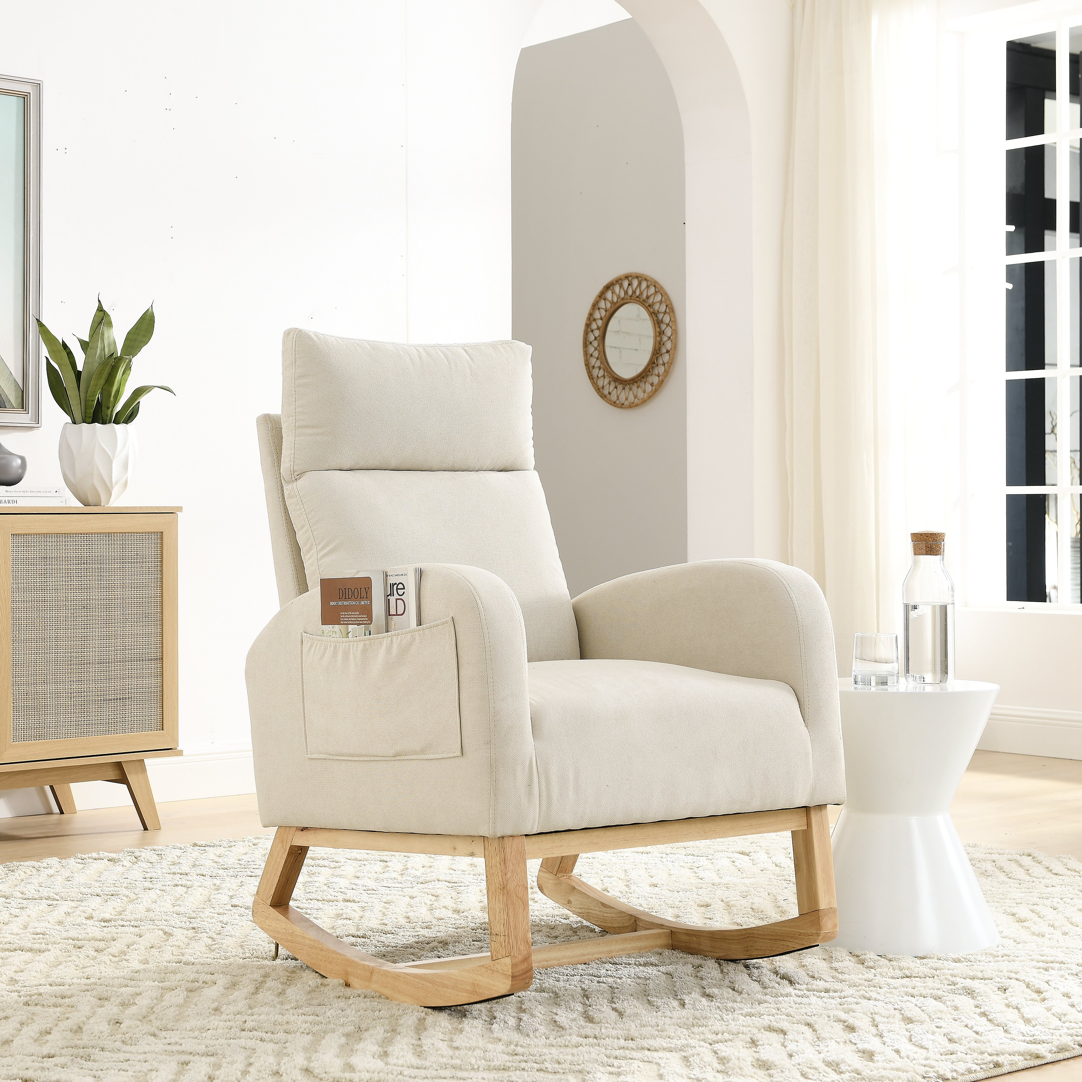 [Video] Welike 27.6"W Modern Accent High Backrest Living Room Lounge Arm Rocking Chair, Two Side Pocket(W83453708)