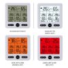 6. When the upper limit of temperature and humidity alarms, the backlight will also become orange yellow, and when the lower limit alarms, the backlight will also become red, accompanied by an alarm sound. This function has a practical invention patent